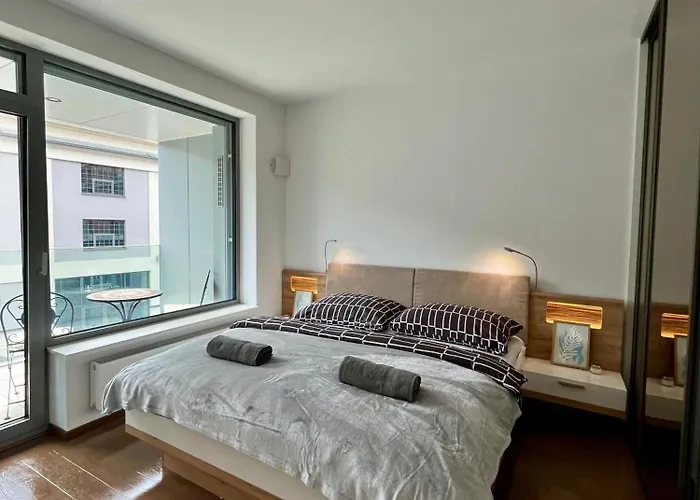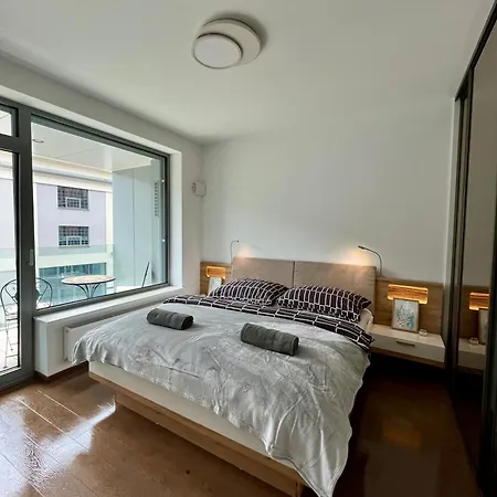 Eurovea Riverside Luxury Condo ferielejlighed ligger 2 km fra Tehelne Pole-stadionet og tilbyder indkvartering med WiFi i hele ejendommen. Denne 1 værelses ferielejlighed har et udstyret køkken og 1 badeværelser.